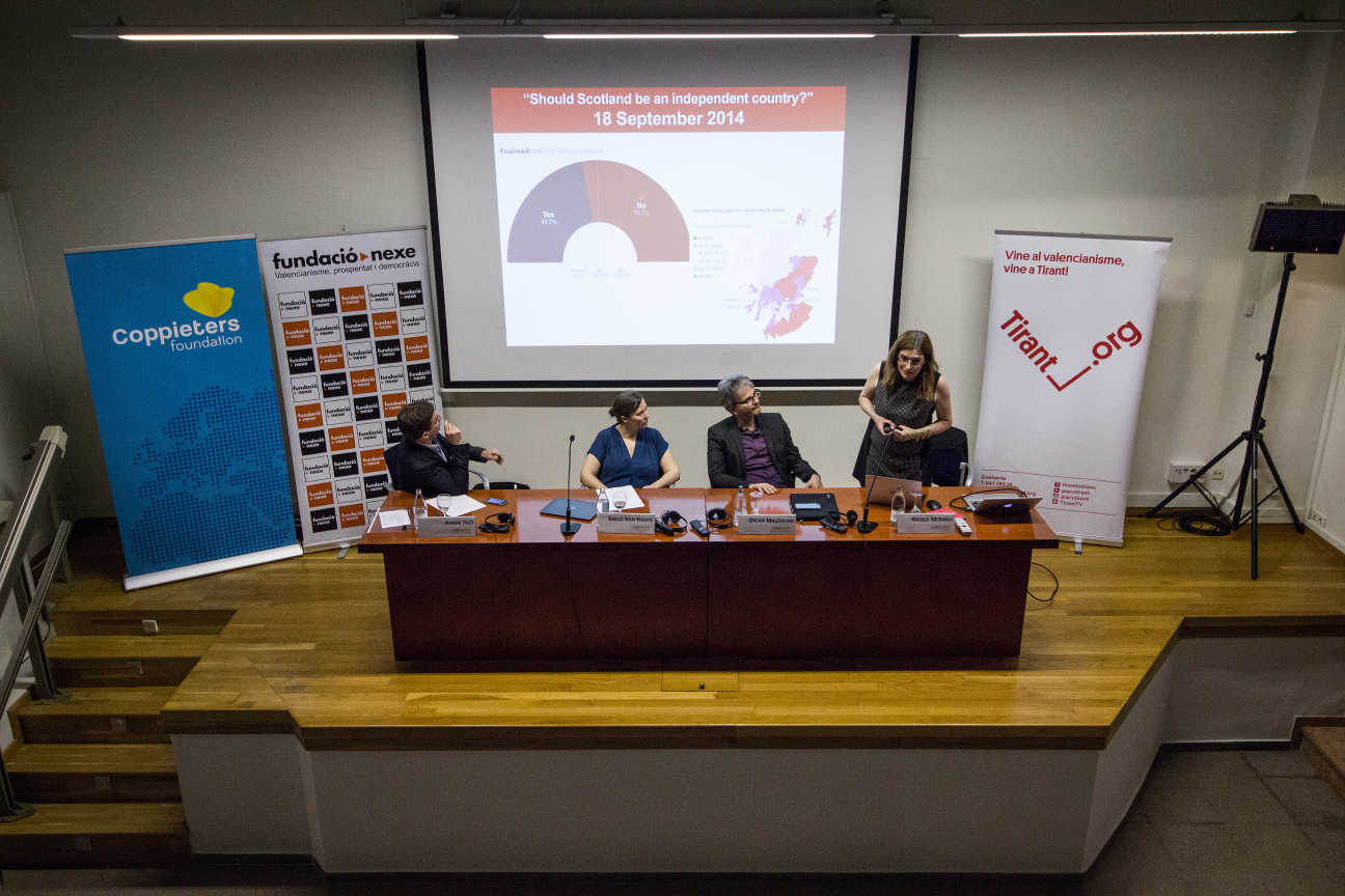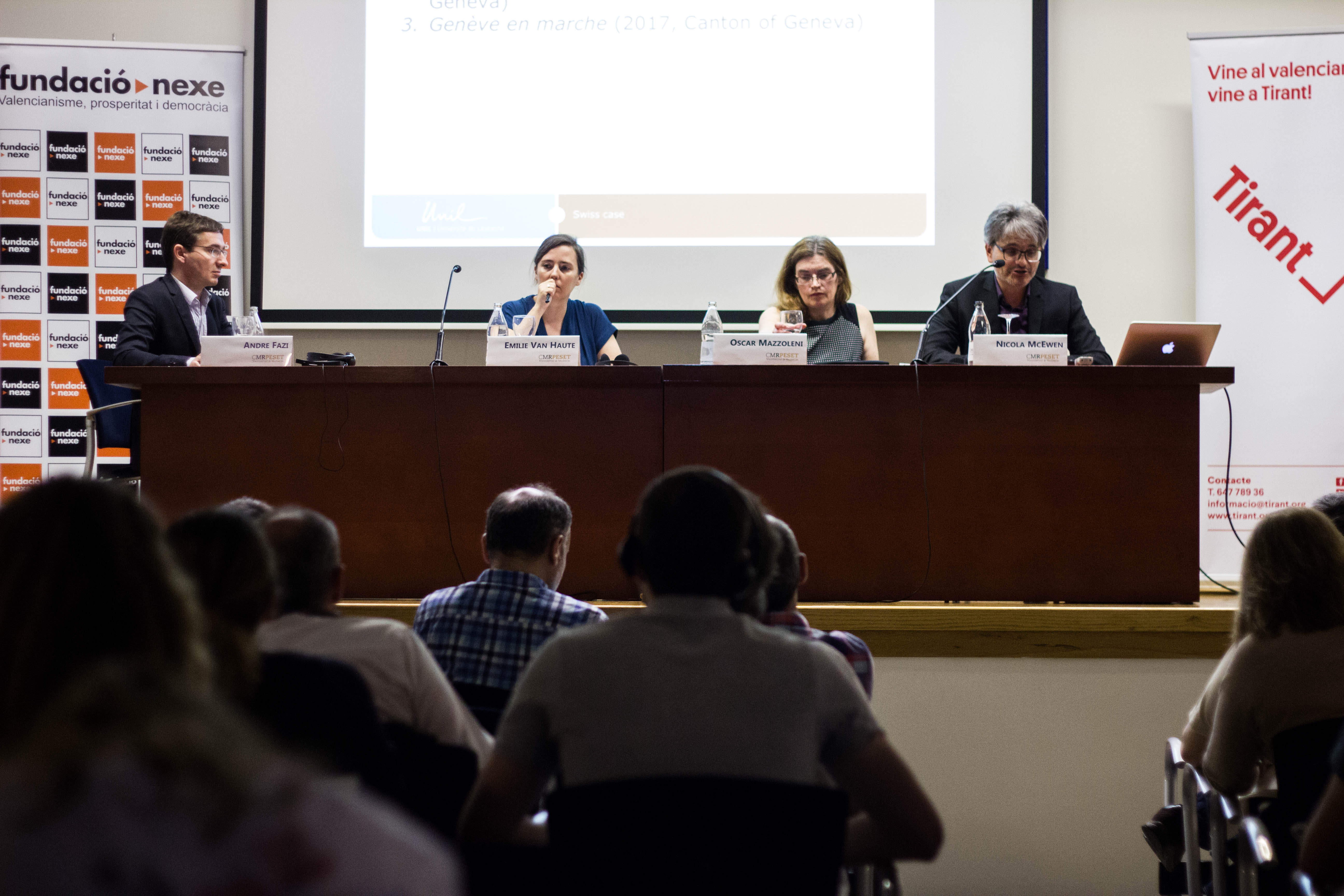 El Workshop constà de diferents panels. El primer reuní a quatre acadèmics de diversos països Europeus per a debatre sobre cóm els nacionalismes minoritaris poden desafiar l’odre constitucional dels seus països. La intervenció inicial fou a càrrec de Nicola McEwen, professora de la Universitat d’Edimburg, que posà de manifest la importància dels diversos referèndums com a clau per a resoldre els conflictes entre Escòcia i el Regne Unit. També en aquest sentit fou la intervenció del professor Oscar Mazzoleni, de la Universitat de Lausanne, al exposar la importància de les iniciatives ciutadanes i la celebració de referèndums com un dels pilars per a canviar el model territorial i la constitució a Suissa. D’altra banda, la professora de la Universitat Lliure de Brussel·les, Emilie van Haute, va exposar les transformacions experimentades pel federalisme belga en les darreres dècades, i la rellevància dels acords consocionals acordats entre àrees culturals i territorials. Finalment, André Fazi, professor de la Universitat de Còrsega, va exposar les dificultats del nacionalisme cors en la cerca d’una major autonomia política, tot i els seus successius èxits electorals.